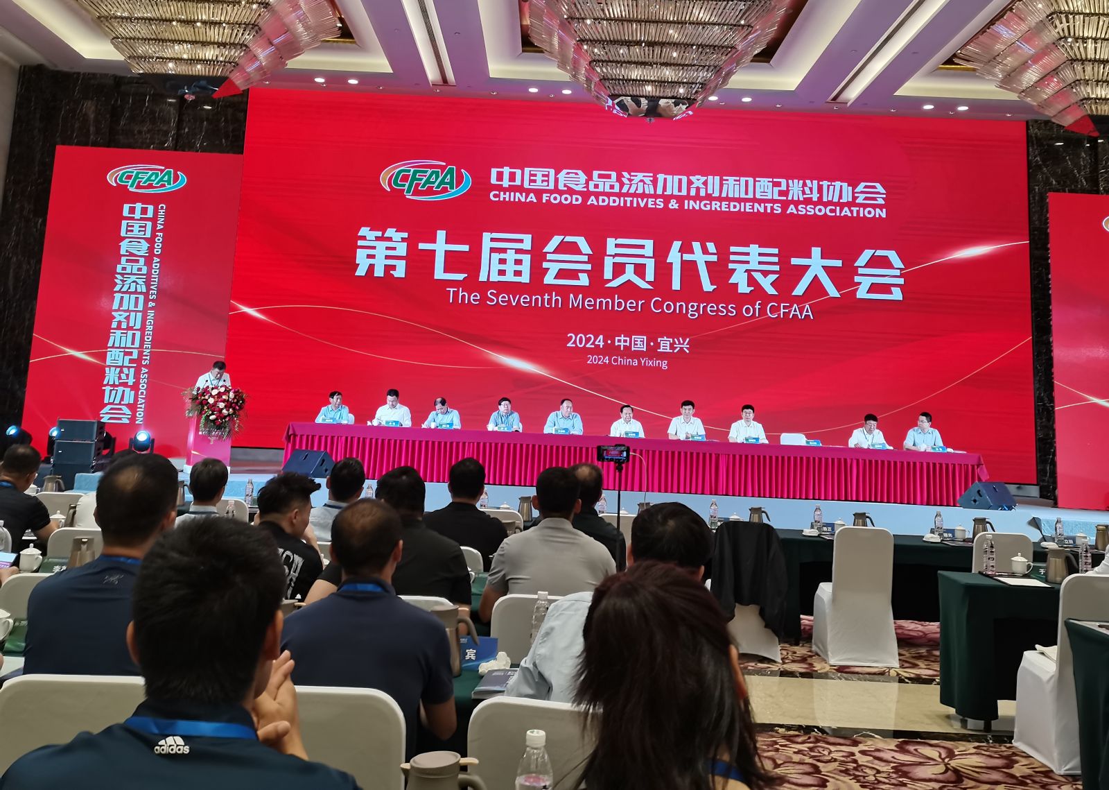 2024年6月12日 ,中國(guó)食品添加劑和配料協(xié)會(huì)(CFAA)第七屆會(huì)員代表大會(huì)在江蘇省宜興市陶都半島酒店三樓會(huì)議大廳舉行。