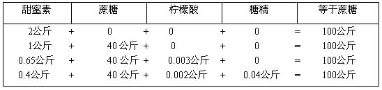 | Note: The maximum usage is calculated based on cyclohexylaminosulfonic acid (14.0 solid beverages and 16.01 jelly powder are increased by dilution and blending times of 0.65g/kg). |